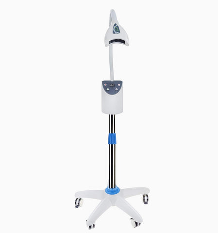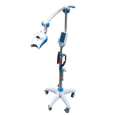 - Pro-LED Machine - Blue LED light technology. 30 minute Advanced whitening results but, only when using TLE Accelerated Teeth Whitening Kits otherwise will need multiple whitening sessions. limited to 30 minute session capacity. Includes machine manufacturer manual, machine height adjustable, mouth piece flexible, 2 sets of sterilizable protective glasses and wheels with brakes. Digital Remote to operate machine.